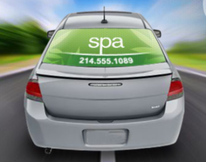 Light plays an important role in how this material looks when applied. When used on a window, only the graphic will be seen from the side with more light. and from the darker side of the window, you can still see through the window with ease. So when the custom decal is applied to the back window of a vehicle, you can see out of the rear window easily, but people looking in from the outside see the printed graphic on the vinyl. See thru window graphics are commonly used for back window decals on trucks, vans, cars and SUV's, but they can be used on any type of window.